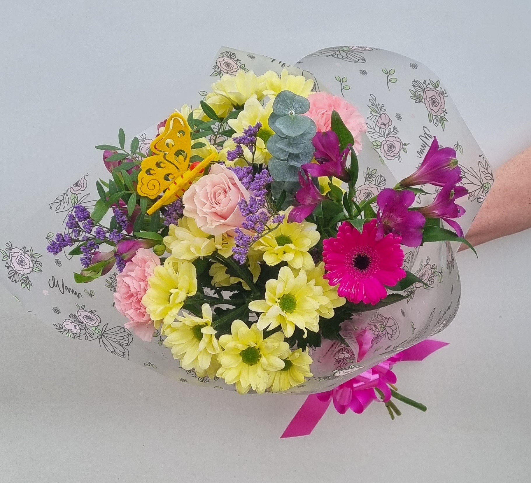 Our Mother’s day mixed Bunch includes a variety of flowers in the colours you choose to be placed in your own vase.